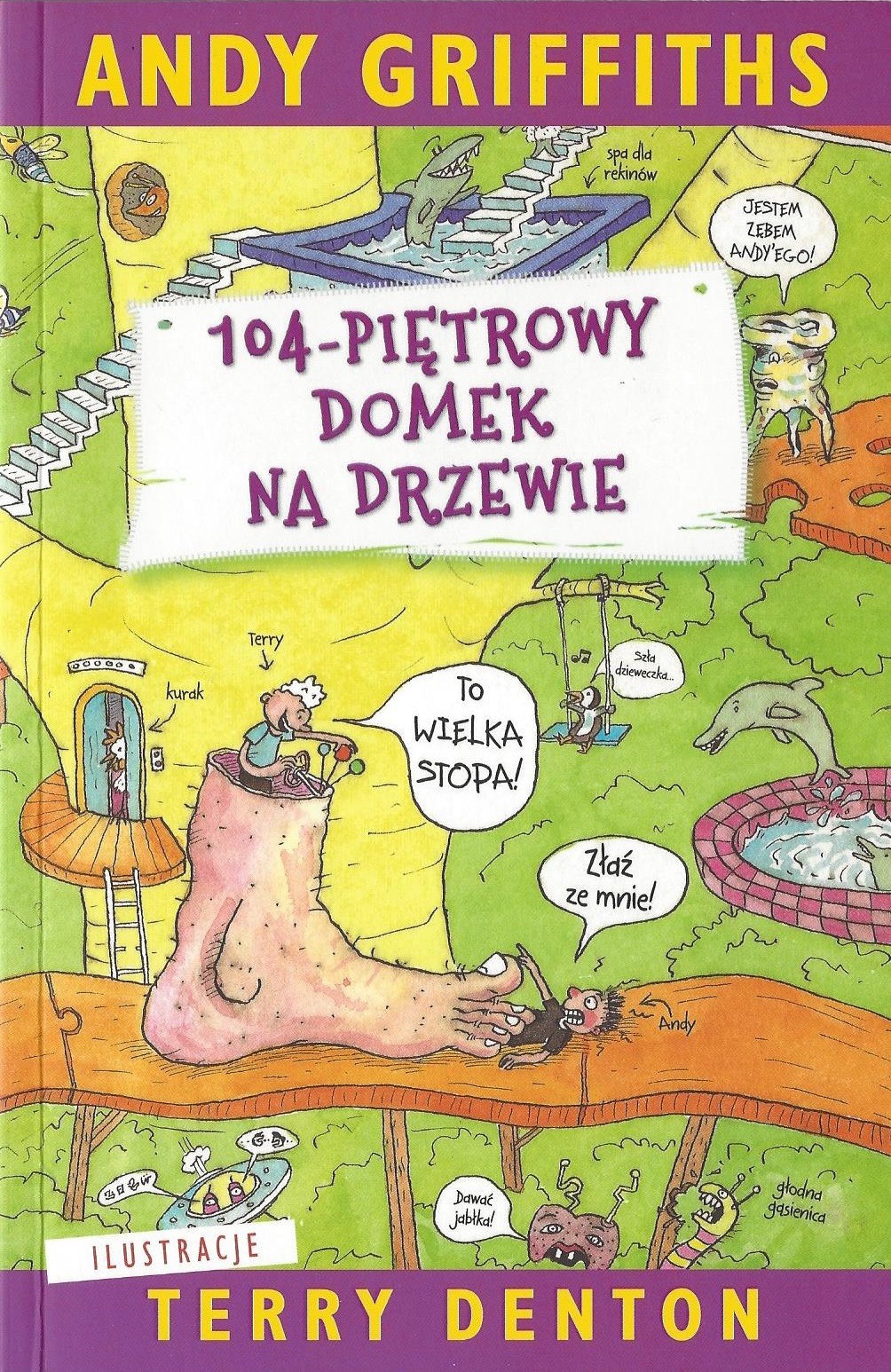 Andy i Terry mieszkają w stuczteropiętrowym domku na drzewie (mieli dziewięćdziesięciojednopiętrowy, ale się rozbudowali). A ten domek jest najfajniejszy na świecie! Znajdziecie tu między innymi: sklep Skąpego Szczypana WSZYSTKO ZA DWA DOLARY, salon Szczupaka Szpanera WSZYSTKO ZA DWA MILIONY DOLARÓW, piętro głupich kapeluszy, niekończące się schody, sto niedźwiedzi, łąkę pełną kaczeńców, ptaszeńców i pomyleńców, pokój głębokich rozważań oraz Żartopis 2000™. No, na co czekacie? Właźcie! Ósmy tom najśmieszniejszej serii od czasów "Dziennika cwaniaczka"!