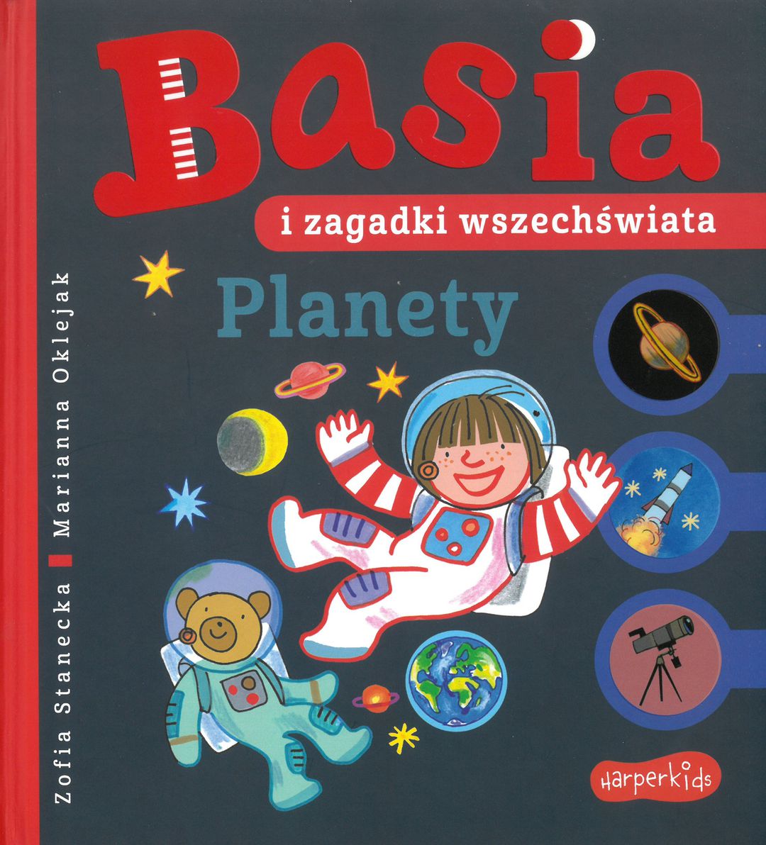 Planety : Basia i zagadki wszechświata / [tekst:] Zofia Stanecka ; [ilustracje:] Marianna Oklejak. - Wydanie pierwsze. - Warszawa : Harperkids, Copyright 2025. - [26] stron : ilustracje ; 23 cm.